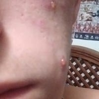 ¿Grano quístico ya reventado? Elminarlo después de seguir supurando. En la mejilla.