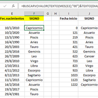 ¿Cómo sería una fórmula que devuelva signo del sodíaco?