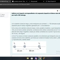 Un alambre conductor largo y recto transporta una corriente l10=10A