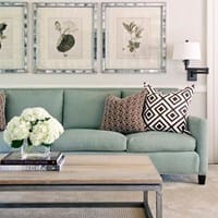 Si el sofá es grande y de color verde mint, ¿De qué color debo pintar las paredes del salón?