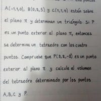 Sea pi el 2x+3y-z=1 ,los puntos A(-1,-1,0) B(0,2,5) y C( 1,1,4) estan sobre el plano pi y determian un triangulo.