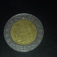 Tiene valor moneda de 5pesos de 1994 con un error de tiene el num y encima tiene el texto de estados unidos pero al revez