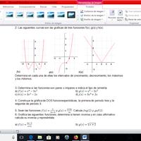 Determina en cada una de ellas los intervalos de crecimiento, decrecimiento, los máximos y los mínimos. Determina si las funciones son pares o impares e indica el tipo de simetría: