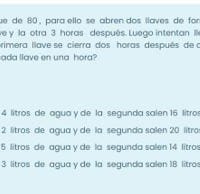 Si se pretende llenar un estanque de 80, para ello se abren dos llaves de forma simultanea, pero pasadas 8 horas se decide