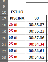 Tengo en una columna una serie de tiempos de natación y necesito obtener el valor mínimo. Pero la dificulta la encuentro en que algunos tiempos son en piscina de 25m y otros en piscinas de 50m, así que de esa columna necesito extraer el valor min...