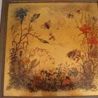 Foto de cuadro pintado sobre pan de oro y base de cristal de 33 x 33 Cms...