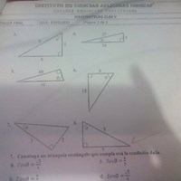 · 7) Si he entendido bien lo que piden, no tiene ninguna respuesta correcta. Vamos a calcular la hipotenusa. h = sqrt(3^2 + 2^2) = sqrt(13) Entonces a) Cos(theta) = 3/sqrt(13) es falsa la respuesta b) tg(theta) = 2/3 es falsa la respuesta c)...