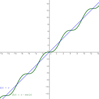 Encontrar los máximos, mínimos, puntos de inflexión de la siguiente función: f(x)=x-sen(x) y obtener su gráfica.