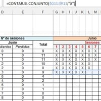 Función contar "x" en un rango de columnas dentro de una matriz de datos según el mes seleccionado para un cliente