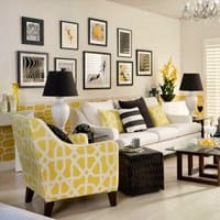 Las paredes en color crema o gris perla, dependiendo si te gusta más el tono cálido o frío. (Pero si eliges crema, te sugiero cambiar las cortinas por unas en beige). Mesa de centro: redonda y extensible, así ocupa menos espacio y es práctica por si...