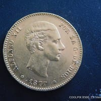 Cual es el valor aproximado de una moneda de 25 pesetas de Alfonso XII de 1877, estrellas de 5 puntas