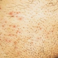 I. Hola Frank, por mí parte pienso que podría tratarse de una foliculitis, que de forma conjunta se encuentra haciendo un 'enconamiento' (vello encarnado o enterrado) del pelo, es un cuadro para el que no conozco ningún tratamiento concreto pero que...