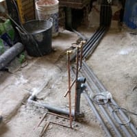 El problema no es el tramo del fregadero al suelo, sino a partir de ahí. En función de como este hecho el tramo desde la isla a la ubicación de la bajante principal, puede ser que tengas hecho ya un sifón. Miralo y si no, pon un sifón, en vez de la...