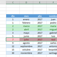 En base a la tabla de la siguiente imagen: Quisiera saber como puedo hacer que si el día actual del mes es 02, se auto marque el rango de la tabla con el día 02 que en este caso lo marque de color verde, sin importar el mes o el año, y en automático...