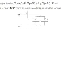 Electricidad y magnetismo- Física. Tres condensadores, con capacitancias son conectados a una fuente de tensión como se muestra