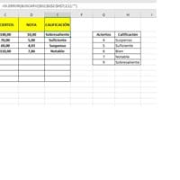 En excel de office 2010, dato de columna de notas medias en color rojo para suspenso, y color negro para aprobado.