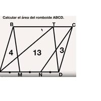 Calcular área de un romboide que tiene puntos y líneas internas con 3 valores distintos.