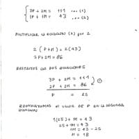 3 piñas y 2 melones cuestan $111, mientras que 1 piña y 1 melón cuestan $43. Encuentra cuanto cuestan las frutas