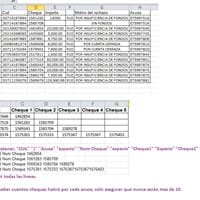 Necesito una macro que luego de realizar algunos ajustes, exporte los datos a un archivo txt. Por cada acuse habrá más de un cheque, necesitamos que queden los datos en las columnas siguientes para luego realizar un alta masiva. Adjunto la imagen...