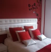 Podrías ponerlas en morado (tela de organza), o en gris plata que ahora se lleva mucho, sobre la cama cojines del mismo color . Si puedes pon estor paqueto. Para cualquier otra cosa aquí estaré