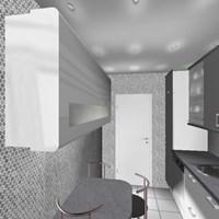 Te voy a hacer una simulación en 3d para que te hagas una idea de como lo pondría yo, el mueble debe ser de estilo antiguo por lo que los demás ponlos modernos, sin tiradores y creo que mejor en blanco para no hacer mezclas de colores . La mesa de...
