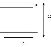 Una caja se construye con una pieza cuadrada de cartón de 10 cm de lado recortando un cuadrado de lado “x” en cada esquina...