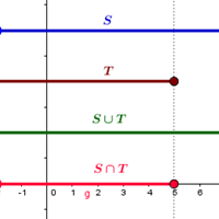 Calcule y grafica los conjuntos S ∪ T y S ∩ T. Si S = {x ∈ R: x > −2} y T = {x ∈ R : −7 ≤ x < 5}