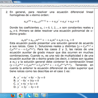 Una ecuación diferencial de segundo orden es de la forma? ´´ +?1 (?)? ´ +?2 (?)? =?(?) y para que ésta sea una ecuación homogénea con coeficientes constantes se deben hacer dos suposiciones: 1. Los coeficientes son constantes. 2.?(?) = 0....