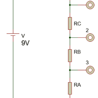 Se tienen 5 dispositivos electrónicos que requieren 3 niveles de voltaje diferente entregados mediante un divisor de voltaje
