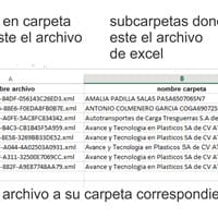 Macros donde A2 (es el nombre de la carpeta) ya generada y B2 (es el nombre archivo.xml) se copie a cada carpeta correspondiente