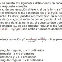 Un punto de una ecuación diferencial de la forma es ordinario si las dos funciones son analíticas en ese punto. Es decir, pueden representarse en series de potencias de con radio de convergencia Si al menos una de ellas no lo es, el punto se dice que...