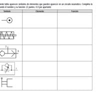 En la siguiente tabla aparecen símbolos de elementos de un circuito neumático.