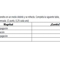 Física: Una rayo de luz penetra en un medio distinto y se refracta. Completa la siguiente tabla.