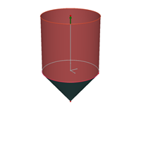Calcular las alturas del cono y cilindro para área superficie mínima con canalón base circular y lados rectos
