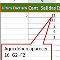 La cosa es; Con esta formula en H obtengo la cantidad en existencia =SI(Y(ESNUMERO(G2);ESNUMERO(Prod_Entrada!D2);Prod_Entrada!D2>0;ESNUMERO(Prod_Entrada!D2));Prod_Entrada!D2-G2;"") En F2 entra la cantidad de ultima facturación, serian 5 Quiero una...