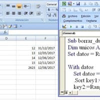 Esta es la macro que yo uso(esta después de la pantalla), espero te sirva de ejemplo, anexo pantalla de como queda el resultado Sub borrar_duplicado() Dim unicos As New Collection Set datos = Range("a1").CurrentRegion With datos Set datos =...