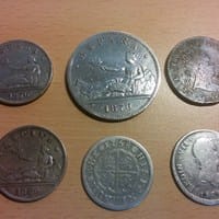 1 peseta 1947 *19*52 1 peseta 1953 *19*54 1/2 piastra Ferdinan IV rey de sicilia 1742 en plata 5 pesos mexicanos plata 1947 1 seiseno de gerona de 1642