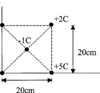 Ley de Columb.En los vértices de un cuadrado de 20 cm de lado se colocan cuatro cargas.