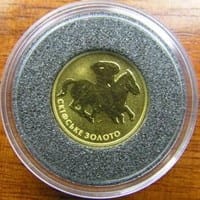 Me puede alguien indicar el precio de la siguiente moneda de Ucrania 2 Grivna 2005 oro escita. 999 oro, 1,24 gr. En cápsula