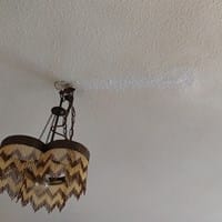 Tienes que que raspar toda la pintura que tienes en el techo y una vez terminado pintar con temple es lo mejor para los baños que tienen pocos espacios para respirar, ya que la pintura al temple es transpirable