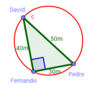 ¿Cuál es el diámetro de la vecindad donde viven si las distancias forman un triángulo rectángulo?