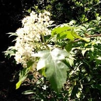 Necesitaría saber el nombre de este árbol cuyas hojas y flores aparecen en primer termino. Por ahora es pequeño, tiene 1,8 mts, y este año ha sacado ya muchas flores.