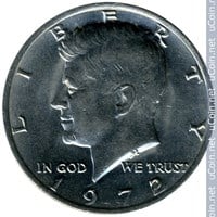 Esta es de Filadelfia. Esta lleva la letra D, se puede ver arriba de la fecha, es de Denver. Medio Dólar Estadounidense de Kennedy Año:1972 Anverso:Cabeza de John F. Kennedy a la izquierda Reverso:Sello Americano Diseño:Gilroy Roberts, Frank Gasparro...