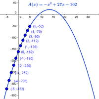 Grafica en un plano cartesiano en ecuacion A=-×2+27×-162