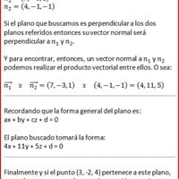 Halla la ecuación del plano que pasa por el punto (3, -2, 4) y es perpendicular a los planos