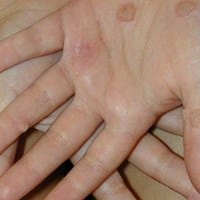 Granos en la mano y boca duros sin dolor