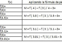 1.-encontrar la pendiente o inclinación en el punto x=3, para lo cual te pediremos que completes la siguiente tabla.