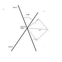 Dos barras se cruzan bajo el ángulo 2α. Cual será la velocidad
