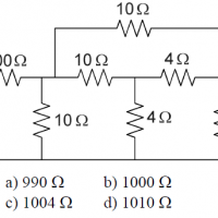 Hola a todos, Alguien me puede poner los pasos a seguir para llegar a la resisténcia total del siguiente circuito: Entre las cuatro posibles respuestas una es la correcta y gracias de anemano.