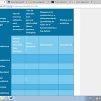 Un cuadro comparativo con descripciones de las tecnologías actuales para la producción de electricidad.